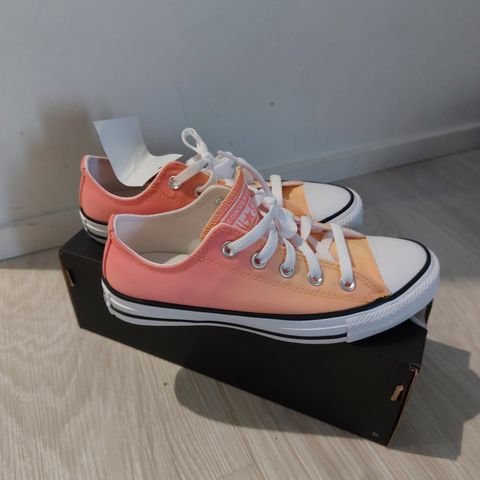 Myynnissä hyvässä kunnossa olevat matalavartiset Converset koossa 37,5. Väri on viininpunainen.