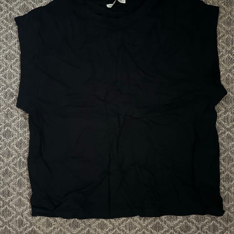 Myydään vähän käytetty naisten musta hihaton pusero/ toppi. Koko L. Etuosa läpikuultavaa kreppiä, takaosa sileää trikookangasta.