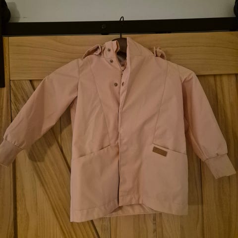 Gugguun välikausitakki kokoa 92, reilu mitoitus, joten meillä oli käytössä 92-104 aikaan. Kunto erinomainen. Värinä persikkainen vaaleanpunainen.