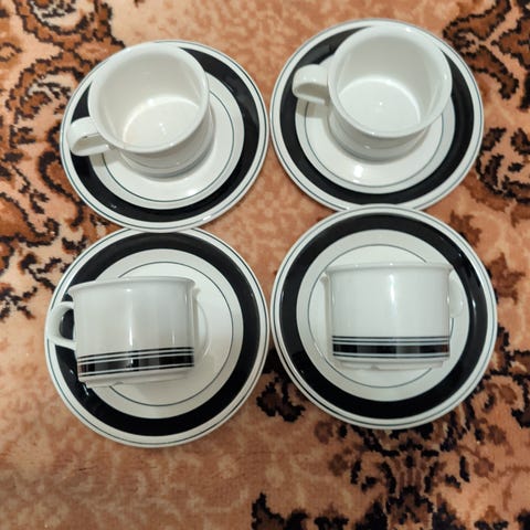 Kaikki 6 kuppia ja 6 lautasta yhteensä