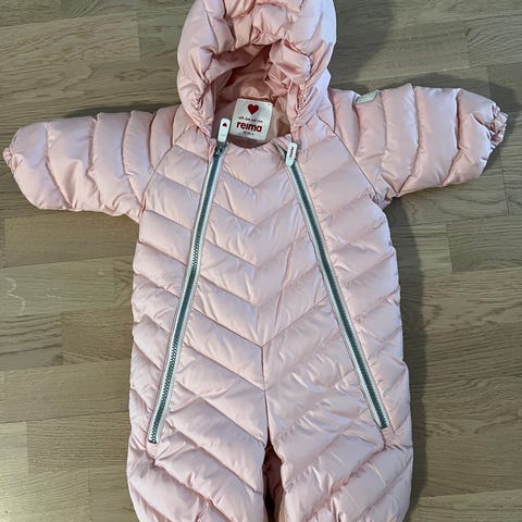 Ihana lämmin ja pehmeä Reiman Tilkkanen untuvahaalari / untuvamakuupussi vauvalle koossa 50/56. Mitoitus on reilu.