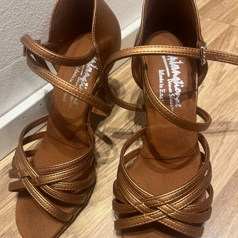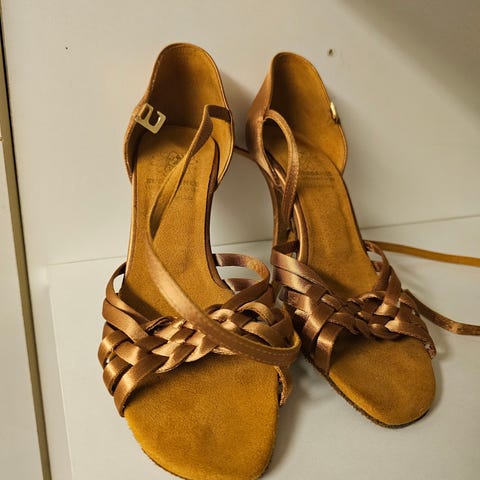 Myydään vain vähän käytetyt lattarikengät. BDDance 216, koko 2,5 (35), korko 2", väri tan.
