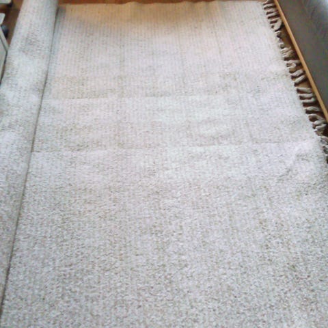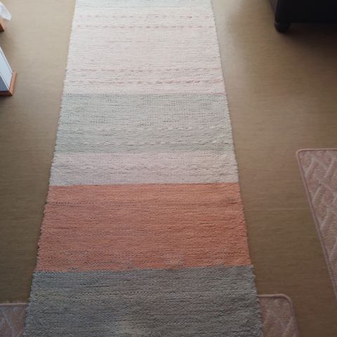 Myydään ehjä ja hyväkuntoinen matto. Pit 155cm ja lev 76cm. Väri harm/valk.3€.