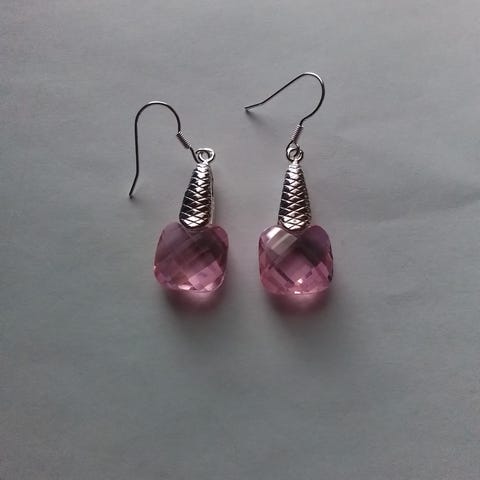 Korvakorut kauniisti hohtavilla vaaleanpunaisilla korukivillä, koristeelliset reunukset, pituus koukun kanssa n.6cm. Uudet.
