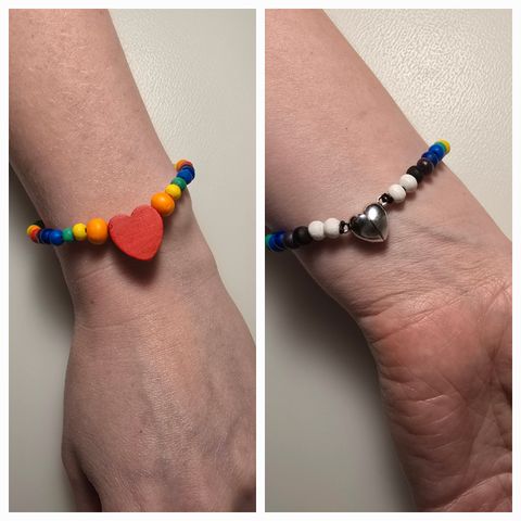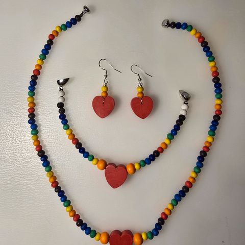 Myydään upea käsintehty puinen sydänkaulakoru/choker sateenkaari/pride väreillä. Helmet ovat käsinmaalattua puuta. Kaulakorun pituus 43 cm. Kätevä magnettikiinnitys. Sopii chokeri-kaulakoruksi. Tarvittaessa voin tehdä tilaustyönä juuri sinulle sopiva koko. Samanlainen setti löytyy musta-valkoisena tai puu-värinen. Mukaan tulee lahja/säilytyspussi. Kaikki saatavilla myös settinä. Katso myös muita tekemäni käsityötuotteita.
