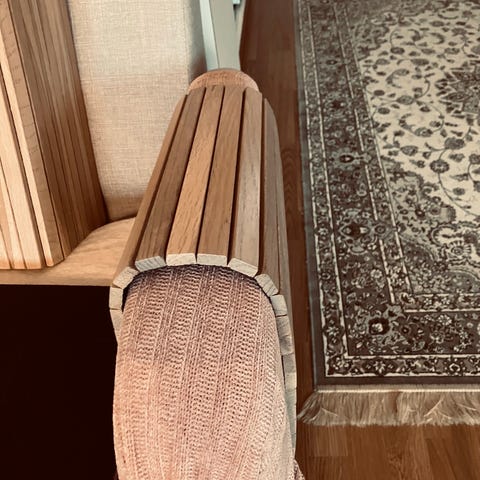 Kuvassa ripustin toisen tyynyn puusohvan selkänojaan