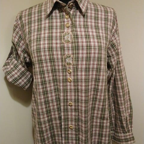 Kuvanmukainen, siisti, tahraton puuvillapaita. Nyörit olkapäillä ja kaulukset nappilista edessä. Koko L kai-kai 54cm joustaa hyvin.