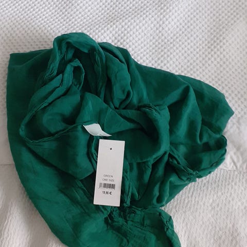 Pirteä huivi vaikka hiusten tai käsilaukun kaunistukseksi. Koko noin 50x50 cm.