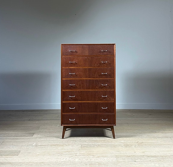 Upea 2,7 metriä pitkä Tanskassa Jyllandissa 1960-luvulla mittatilauksena valmistettu tammesta tehty senkki, huoneenjakaja ja työtaso. Senkki tarjoaa runsaasti säilytystilaa: sen toisella puolella on 18 kaunista ulosvedettävää laatikkoa ja hyllyä, ja toisella puolella kaksi suurta liukuovea, joiden takana on hyllytasoja.