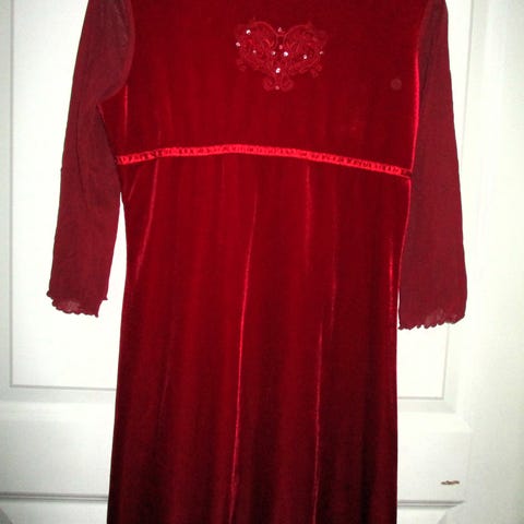 Kerran käytetty itsenäisyyspäivä tanssiaisissa hopean värinen pitkähihainen juhlava mekko. Vain hihoista näkyy läpi, muualla on ohut vuori /kiinteä alushame. Olka- helma n. 84 cm Ja kainalo-hihansuu n. 45 cm. Päällinen kangas 55 % polyesteria, 45 % metallikuitua. Vuori 100 % polyesteria.