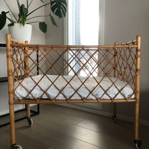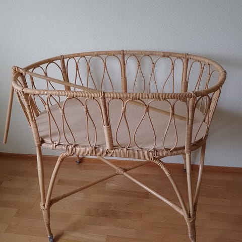 Myydään 70-luvun vauvan ensisänky rottinkia/koivua. Mukaan valkoinen reunapehmuste sekä sänkyyn teetetty siisti patja, jossa käytetty aina kosteussuojaa. Sänkyyn löytyy myös siihen kuuluvat pyörät, joilla sänky on helposti liikuteltavissa.