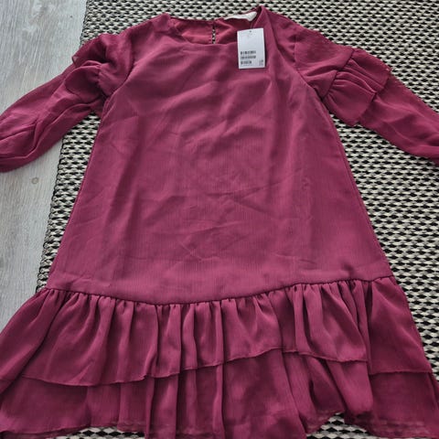 Sopii kaikkiin vuodenaikoihin. Voidaan käyttää yksinään keväällä ja kesällä ja paidan kanssa syksyllä ja talvella. Sama mekko äidille ja lapselle. Naisten koko M ja tyttöjen koko 128.