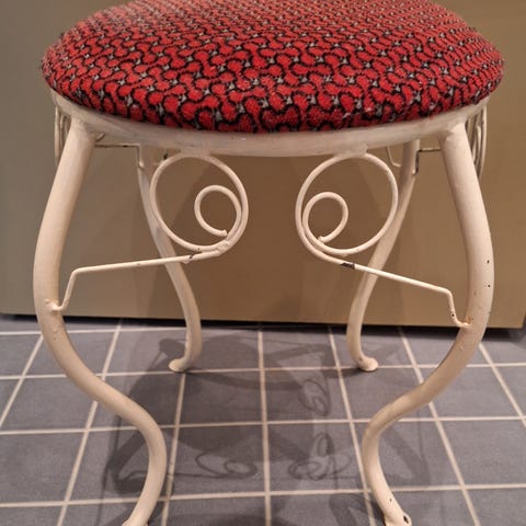 Tuunattu retro jakkara jota voi käyttää myös yöpöytänä.
