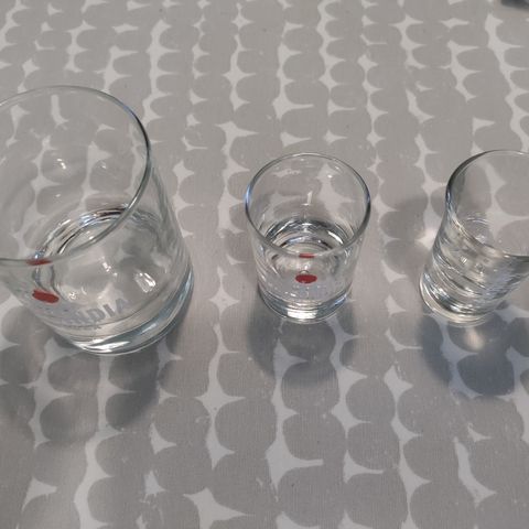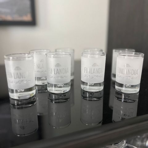 Finlandia Vodka snapsilasi, mitat : h=6,5 cm halkaisija 4,4 cm. HP 5 € +pk/nouto Tampereelta, sopimuksen mukaan.