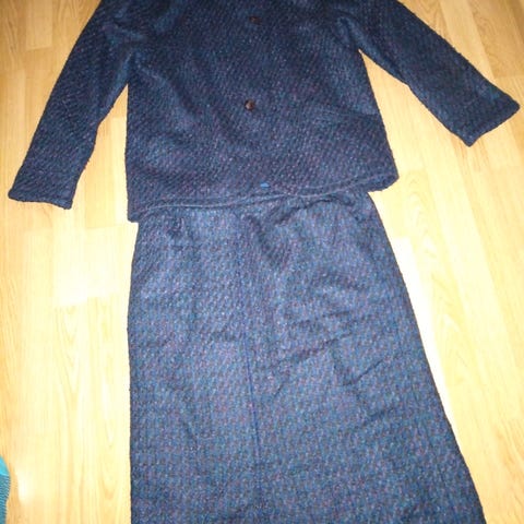 Beautiful wool skirt+jacket set from the 1960s. Handmade in Finland with love and care. 💖 greenish-grey with stripes. Size maybe 42-44.