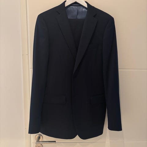 Erittäin siisti puku ja paita. Väri SF Blue. Paita koko M, slim fit, X - long. Housut 32/32 slim fit.