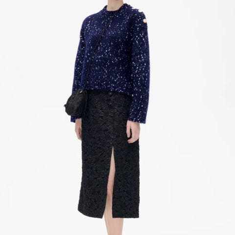 Hieno, käyttämätön Baum und pferdgarten "liivimekko". Laadukas villasekoitekangas (68% villaa) ja kaunis raidallinen vuorikangas. Edessä satiiniset paikkataskut, jotka vuoritetut (ikään kuin pussit) ja vain kulmista kiinni. Edessä koristenappilista. Mekko puetaan pujottamalla. Sopii hyvin kerrospukeutumiseen, mutta riittävän pitkä mekoksi ainakin 165 cm pitkälle.