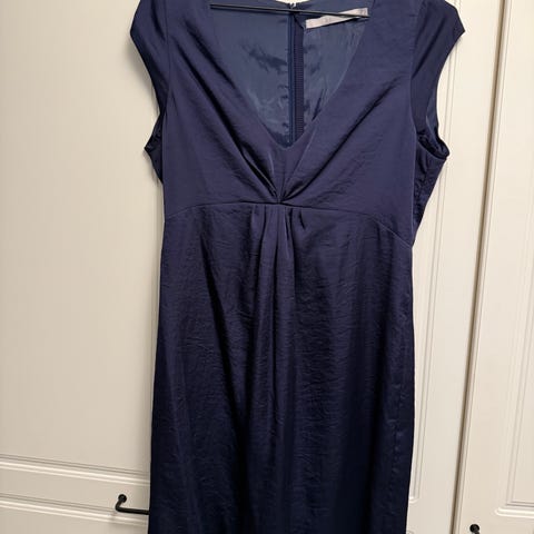 Klassinen lyhyt silkkimekko, sivulla vetoketju. Siistissä kunnossa. Koko 38, pituus 90cm ja kai kai mitta 49cm. Vuoritettu