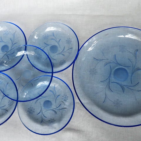 Nuutajärven vanhat lasiset kakkulautaset, tummanharmaat, 6 kpl