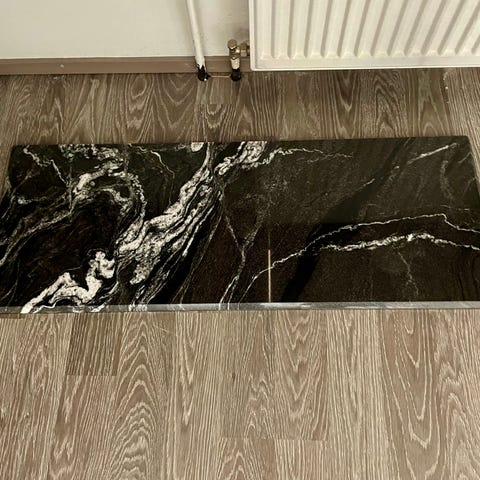 Valmistamme kauniita, harmaan, mustan ja vaalean sävyjä yhdistelevästä aidosta italialaisesta marmorista, Grigio Carnicosta takan/tulisijan eduskiviä. Kolme reunaa – yksi pitkä ja kaksi lyhyttä – on kauniisti kaksiportaisesti viistetty, jotta et lyö varpaitasi kiveen. Marmori on 20 mm paksua.