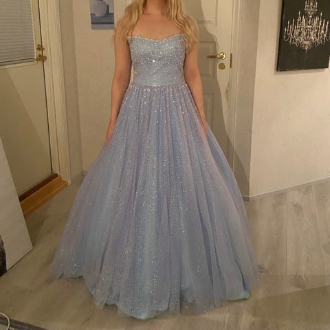Mekolla on tanssittu yhdet vanhojen tanssit. Takaosalla on helppo säätää mekko sopivan kokoiseksi. Olen itse 165cm pitkä ja mekko istui vannehameen kanssa hyvin. Mekko on S kokoa. Tule kysymään lisätietoa! Mekkoa voi myös tulla sovittamaan.