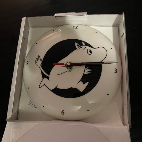 Priimakuntoinen, käyttämätön, alkuperäinen pakkaus. Muumi seinäkello.