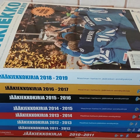 Tästä jääkiekko / KOOKOO diggareille / faneille 11 kpl kausijulkaisuja, sekä 2 kpl PLAYOFF KOOKOO lehtiä.