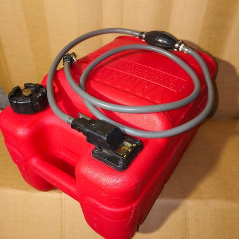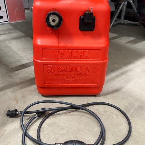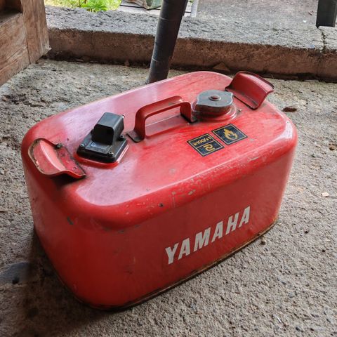 Metallinen yamaha veneen bensatankki. Kuvasta poiketen ilman korkkia.