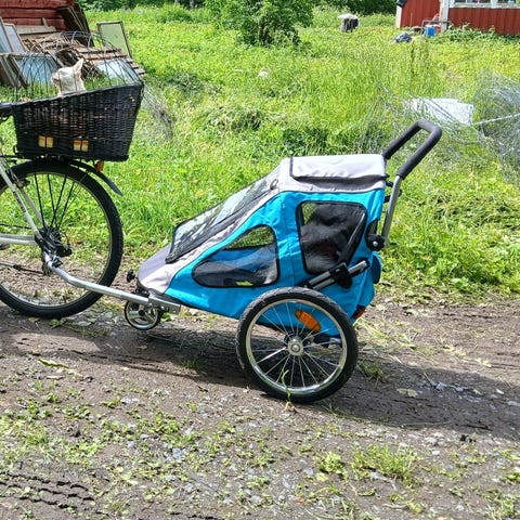 Kerran kokeiltu s koon pyöräkärry koiralle.