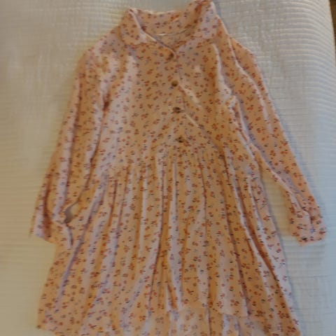 Sininen-musta-ruskean värinen tunika/mekko, koko vastaa 128cm. Ulkomailta ostettu. Sisällä sininen vuori eli on paksumpaa mallia. Edessä kauluksen yhteydessä napit. Hyvässä kunnossa, ei nukkaa tai tahroja.
