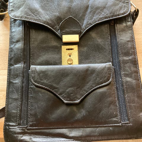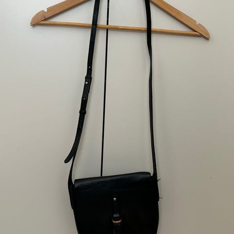Myydään musta olkalaukku, P. T. Design. En ole varma onko oikeaa nahkaa vai ei.