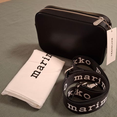 Myydään musta Marimekon gratha laukku. Kuvissa näkyy käytön jäljet, jotka oikeanlaisella aineella varmasti saisi hälvennettyä. Ostettu 5/2023.