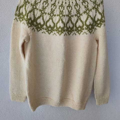 Kotikulta-langasta (75 %villaa ja 25 % polyamidia) kudottu uusi Strömsö-mallinen villapusero/-tunika. Kokonaispituus 75 cm, leveys 60 cm ja hihan pituus kainalosta 42 cm. Väri on kuvassa ihan oikea eli "hillitympi murrettu" punainen.