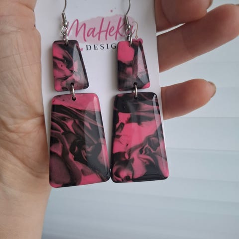 Nämä korvikset ovat 3D tulostettuja, hiottu, akryylimaalilla maalattu ja uv-hartsilla viimeistelty. Painoa yhdellä korviksella 5 g