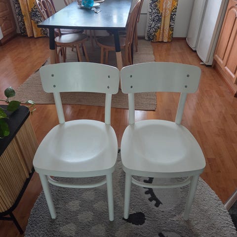 Myyn kaikki neljä tuolia yhteishintaan 40 euroa. Voin myös myydä pelkästään kaksi tuolia hintaan 20 euroa.