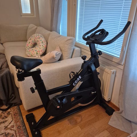 Core spinningpyörä 1300! Se mahdollistaa laadukkaan kuntosalitasoisen harjoittelun esimerkiksi omassa olohuoneessa. Sen laajat säätömahdollisuuksien ansiosta, saat säädettyä itsellesi juuri optimaalisen polkemisasennon. Oikean asennon asettaminen on tärkeä huomioida, jotta saat parhaan mahdollisen hyödyn treenistä.