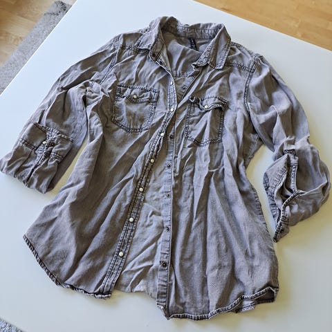 Harmaa ohut pusero. Kainalo hihansuu 44cm,kainalo kainalo 55cm. Kaunis malli ,erittäin ohut ja kevyt kesäpaita . Ryppyinen säilytyksestä.