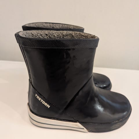 Ehjät ja melko vähälle käytölle jääneet lasten kumisaappaat. Merkkinä Tretorn ja kokona 26.