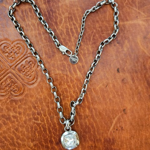 Dyrberg/Kern hopeanvärinen kaulakoru, jossa kristalliset ”korukivet”