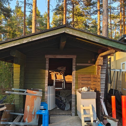 Tapulissa olevia hirsiä savusaunan tai laavun tarpeeseen