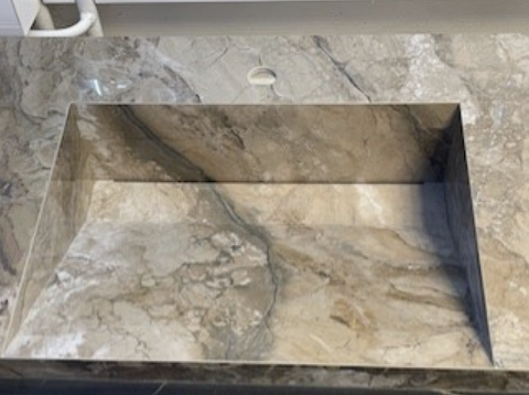Upea keraamisesta kivestä tehty allastaso 1010x500x60mm (leveys, syvyys, korkeus). Altaan takaosa 365mm ja etuosa 695mm.
