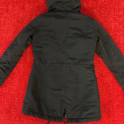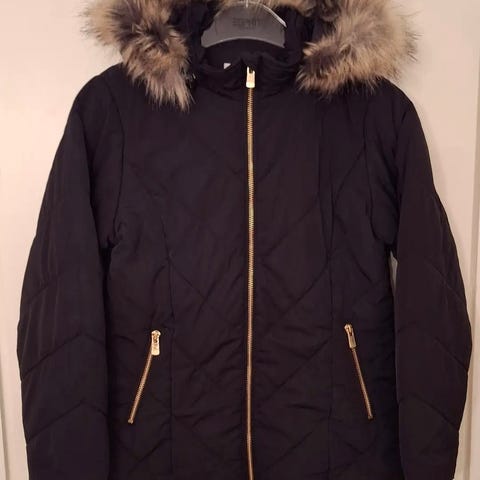 Myyn mustan karvahupulla olevan talvitakin. Koko 152. Siisti ja ehjä. Hinta 15e+posti.