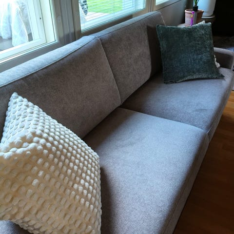 Selkänoja verhoiltu oranssilla Valore-villasekoitekankaalla, istuimessa musta Nemi-keinonahka.