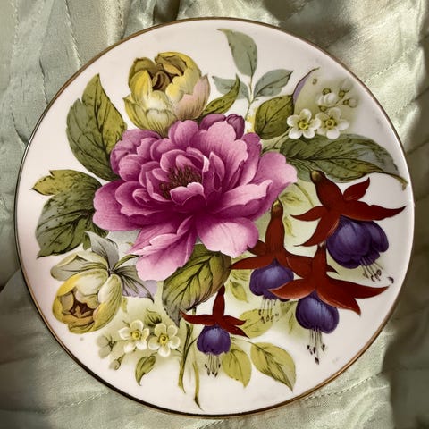 Kermansaven käsinmaalattu Kukkiva-puutarha- kukkalautanen.
