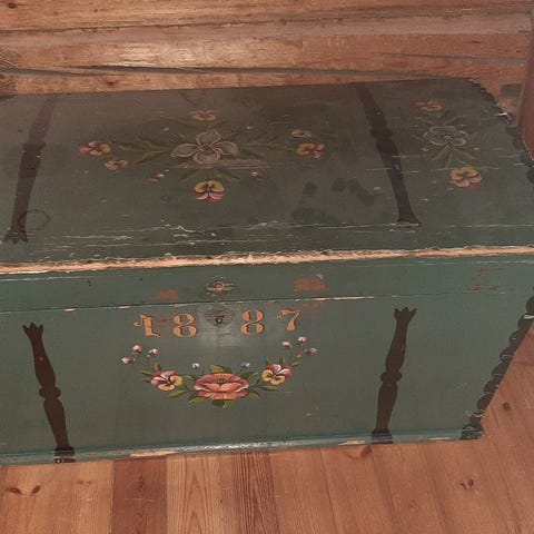 Antiikki arkku, mitat leveys 56cm korkeus 40cm syvyys 42cm. Alle laitettu renkaat helpompaa siirtelyä varten sivuissa kahvat josta saa kannettua. Sisäpuolen ehostuksella vielä pitkäksi aikaa iloa jollekin. Maksutapa mobilpay/tilisiirto+postit. Haku mielellään. Tai sit postit 19.90 tarjosi postin sovellus ainakin.