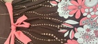 Suloinen ruskea kukkamekko kivoilla yksityiskohdilla ja kukkaprintillä.