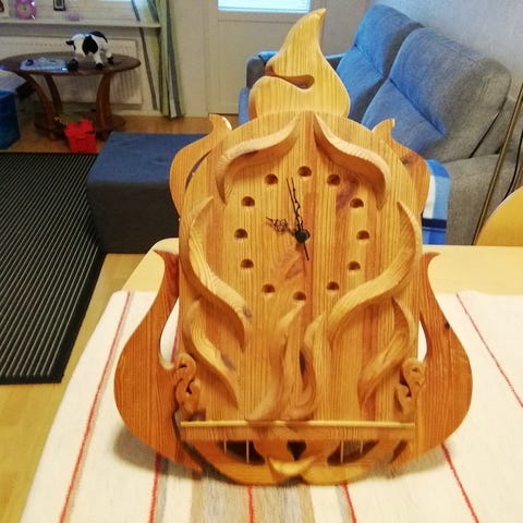 Myydään hämähäkki seinäkello käsintehty puusta.