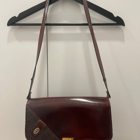 Taskulaukku Danfessa. Väri violetti ja kukkakirjailut. Käyttämätön laukku usealla taskulla.