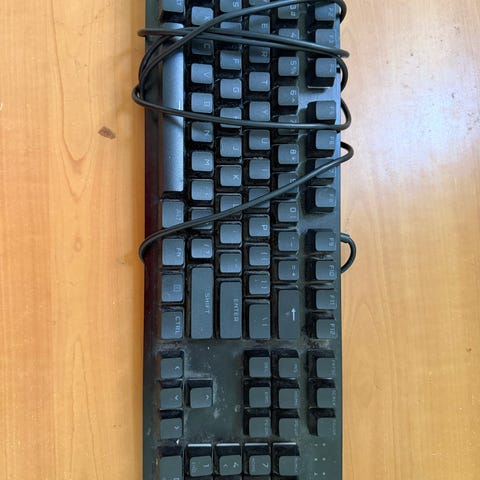 Tuote on hyvässä kunnossa ja siinä on ranne tuki tallella. Näppäimistöstä puuttuu osa näppäimistä mutta puuttuvat näppäimet eivät vaikuta pelaamiseen. Mukana ei tule muuta kuin näppäimistö, sen piuhat sekä rannetuki.