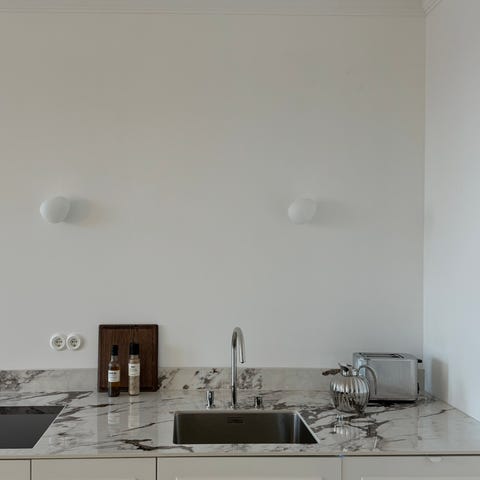 Keittiöremontin tieltä pois terästaso kahdella altaalla.